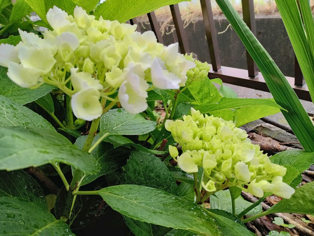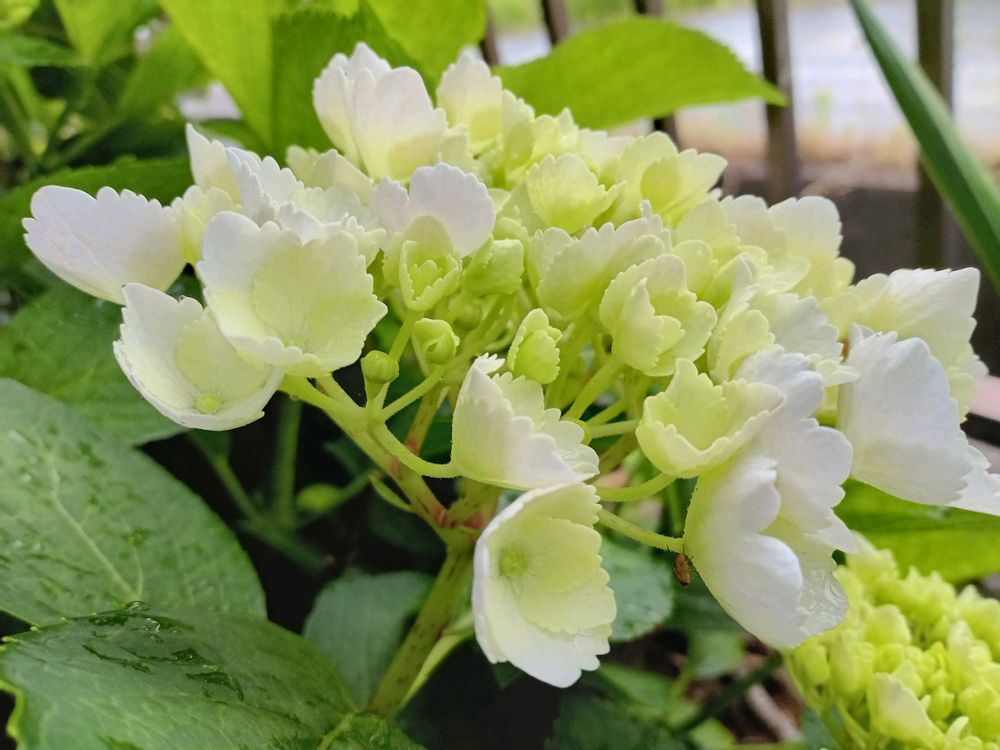 真っ白で可愛い紫陽花やねぇ🤍💚