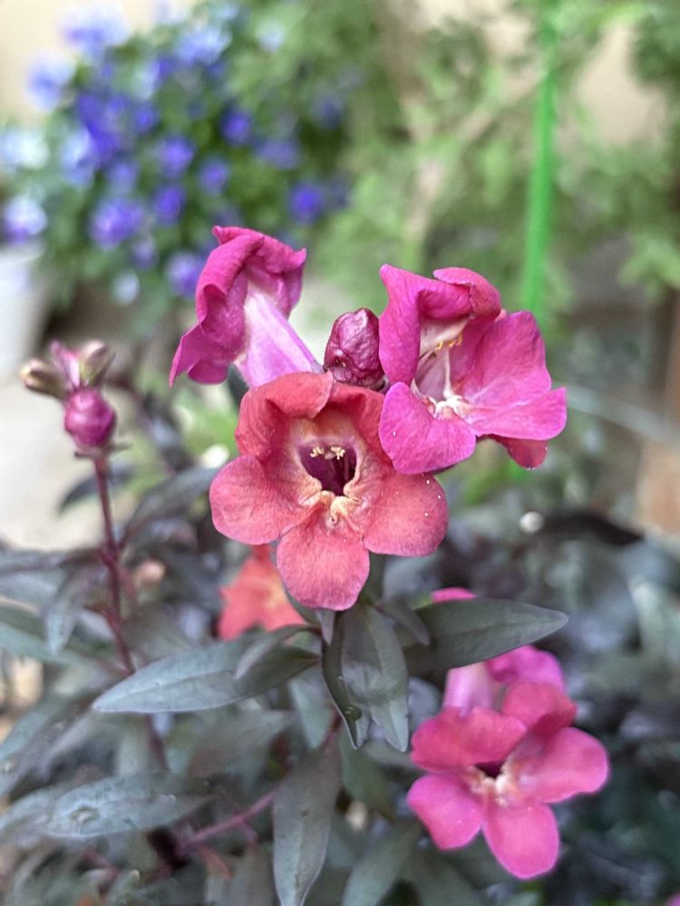今日咲いてた銅葉のキンギョソウとピンクのキンギョソウ