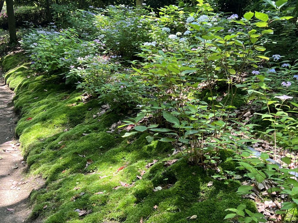 今年も栗林公園でシチダンカがしっとりと咲いていました。雨がたくさん降った翌日だったので、朝の光のスポットライトを浴びて苔も一段と鮮やかです。