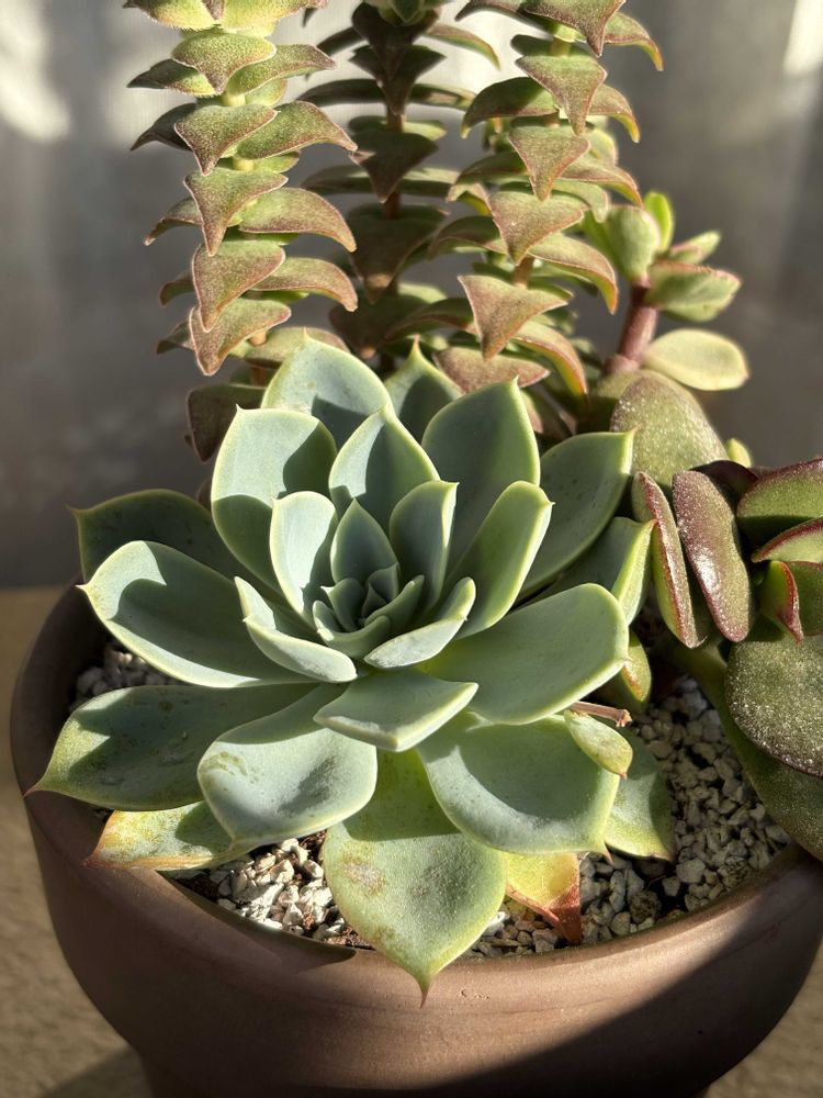 写真は、朝6時過ぎ頃から朝日を浴びる多肉さん達…☀️