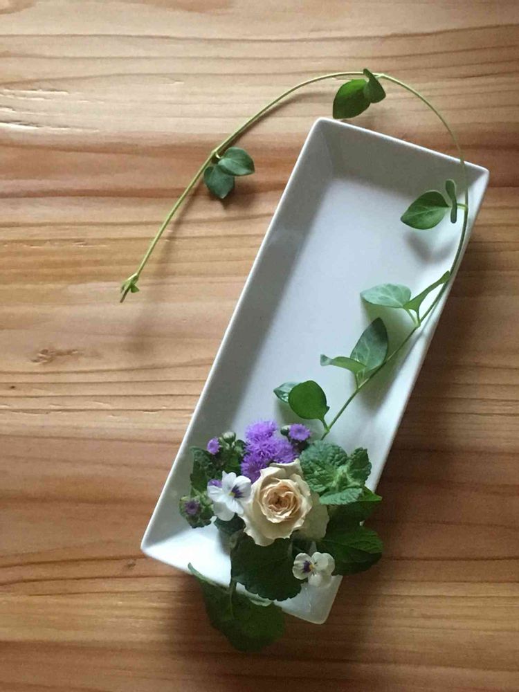 ツルニチニチソウの葉が綺麗ですね〜プレートアレンジも中々ですよ(^ー^)