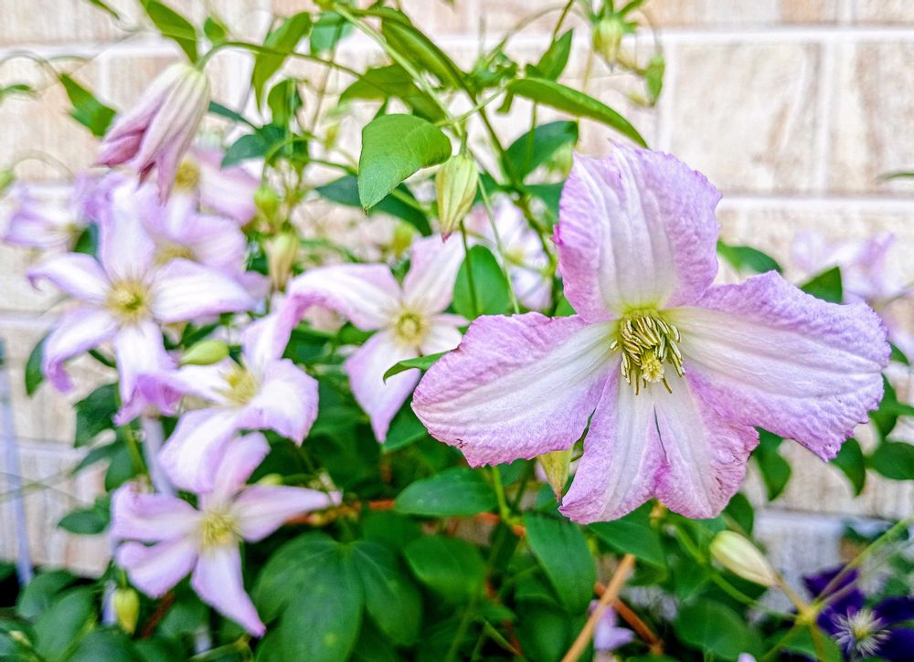 ✤クレマチス「リトル・ネル」は、小さく涼し気な雰囲気で咲いてくれてます🩷🤍🌿