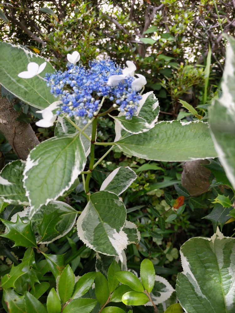 投稿2枚目です。わが家の庭のシロタエギクも、もう見納めのように頑張って咲き続けてます。斑入り紫陽花もブルー💙が綺麗になって来ました!