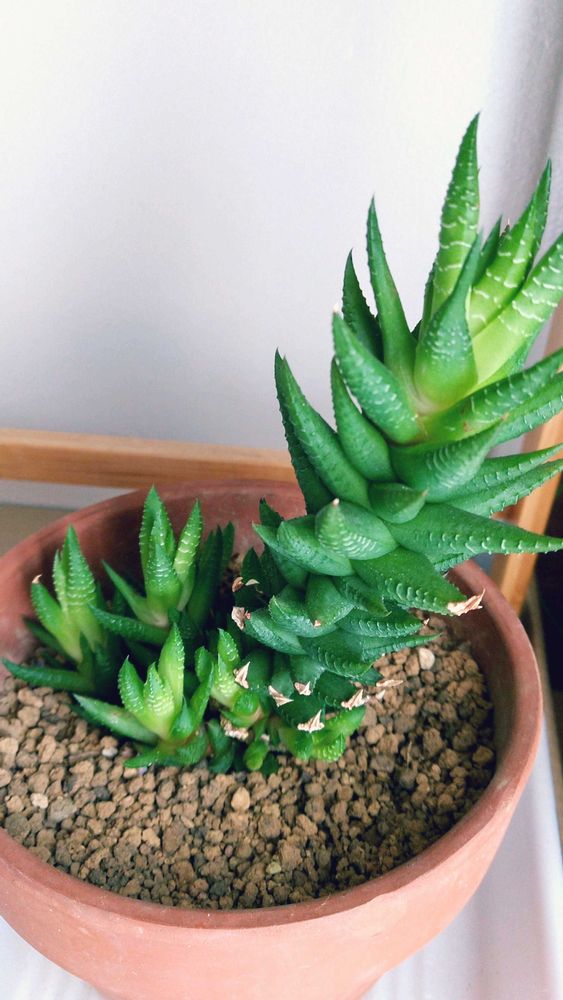 これは、先っぽがトゲみたいに見えるかもしれませんが、多肉植物でハオルチアの種類です。