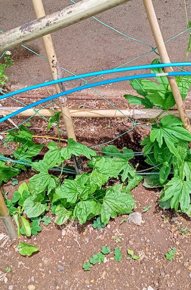 ゴーヤカーテンの支柱を立てた💃
