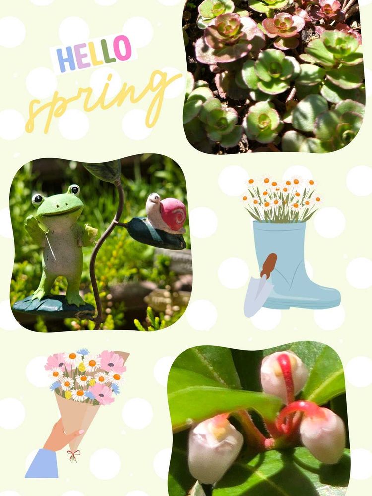 カエル🐸ちゃんの手前に葉牡丹植えていましたが終ったので春からセダム植えてモリモリになってきました🥰