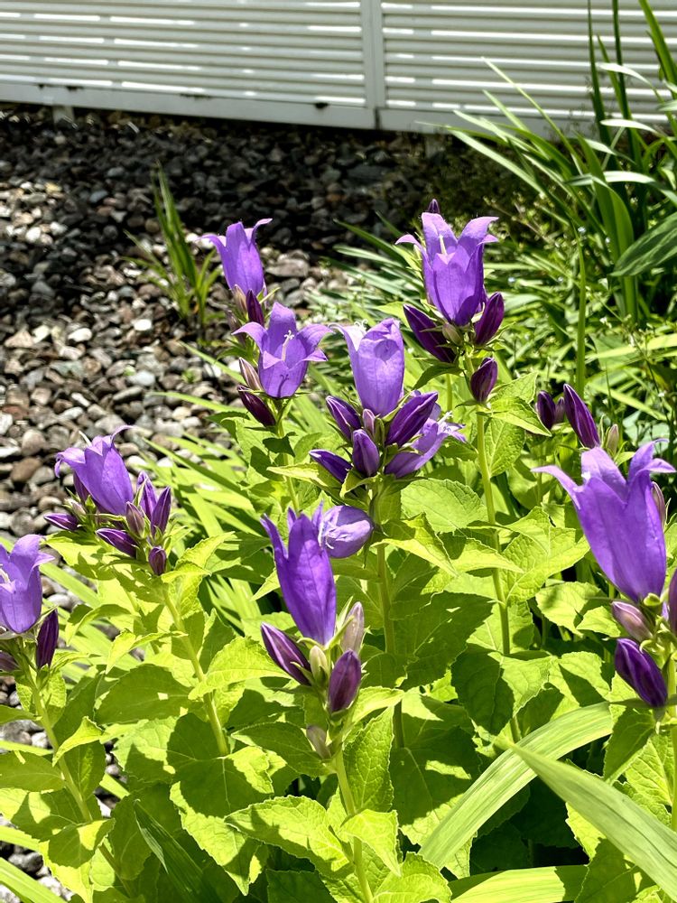 友人の事務所の花壇で咲き始めたカンパニュラ💜可愛いです!
