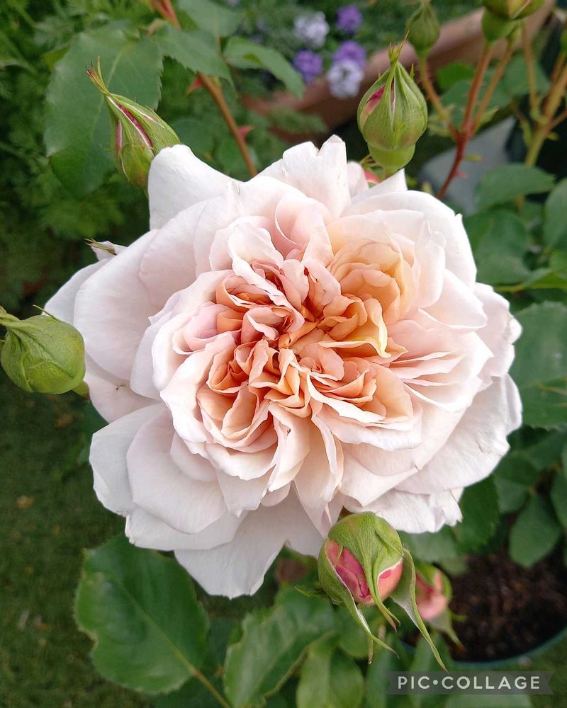 おおらかで上品な花がドレープの美しいドレス生地「タフタ」の様で命名トゲは少なめで繰り返し良く咲く耐病性の強い薔薇だそうです😆👌💕