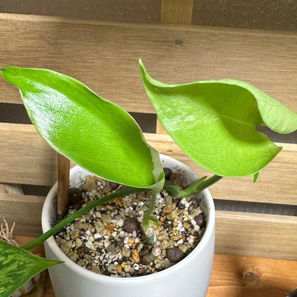 2025.8月に某サイトで購入した【アロカシア チャイ】の 突然変異?なんだろう 購入時、元々有った葉を(1枚目の葉)として、 下から新たな葉が出てきてる状態で到着しました(2枚目の葉) こちらに来て初めて出てきた葉に異変が。。 育て始めて出てきた初めての3枚目、4枚目 (途中から、斑1、斑2、、と続きます) どこまでこの謎の斑入葉が続くのか、 いや止まるのか……記録していきます
