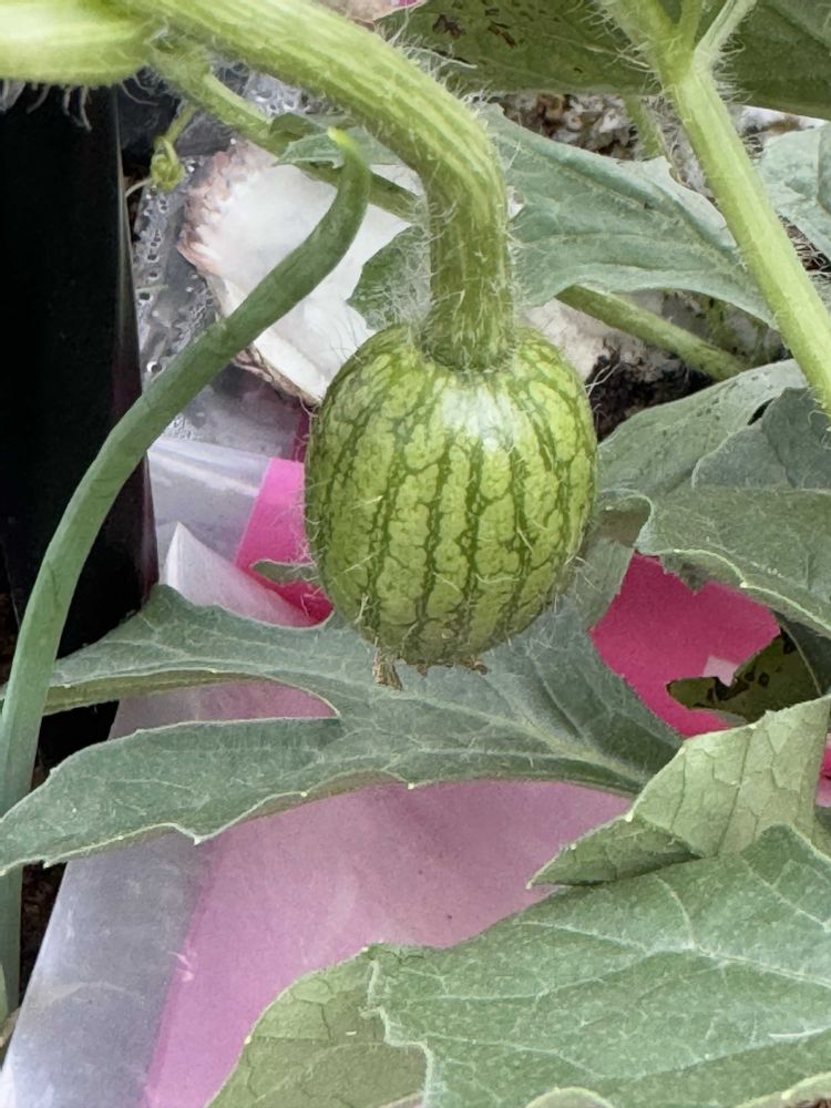 第1花は摘花し、第2花は5月27日に咲き人工授粉をさせ、現在は野球のボールほどの大きさになっています。