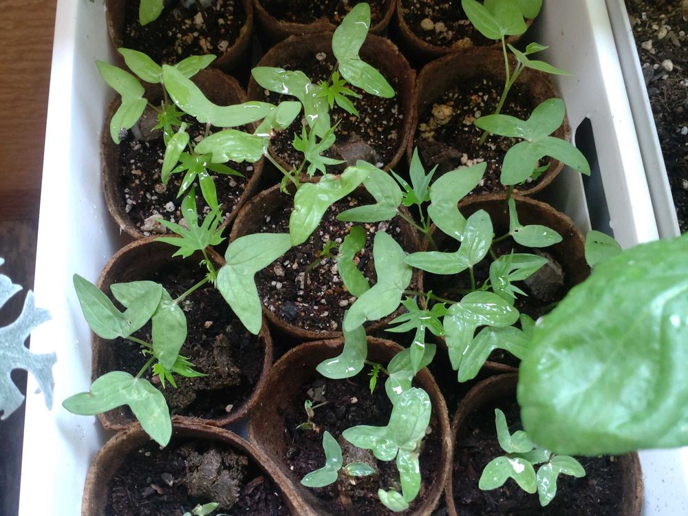 朝顔 江戸風情🥰種をいただいて植えましたが…一つのポットに蒔きすぎたので早く植え替えなくちゃ💦