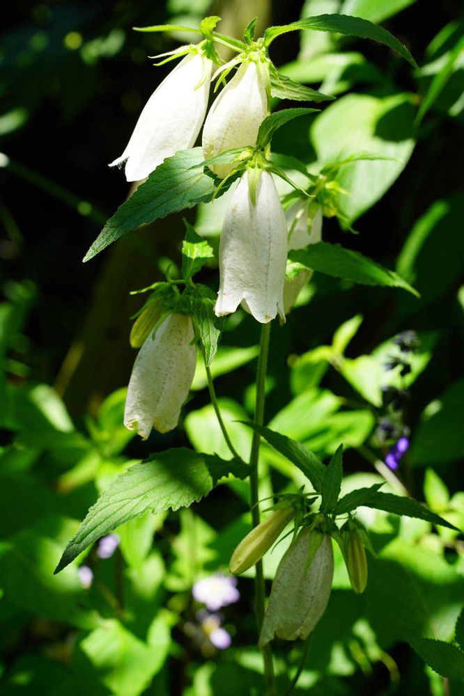 2枚目の白いホタルブクロは、あちこち満開。増え過ぎて困っているのに、なぜか苗を抜けない私です。