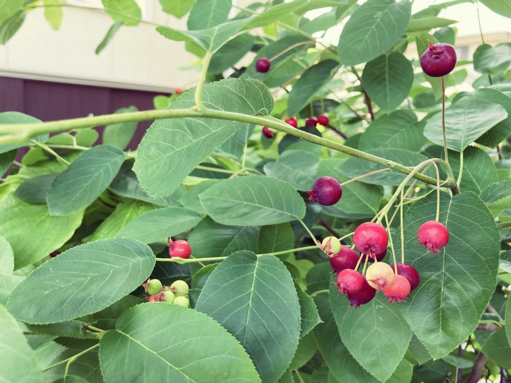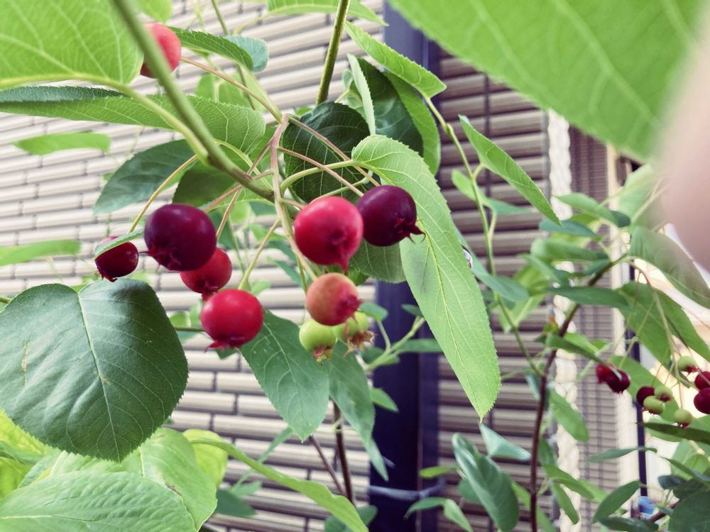 ジューンベリー赤くなってきました〜。今年はちょっと少なめ🍒