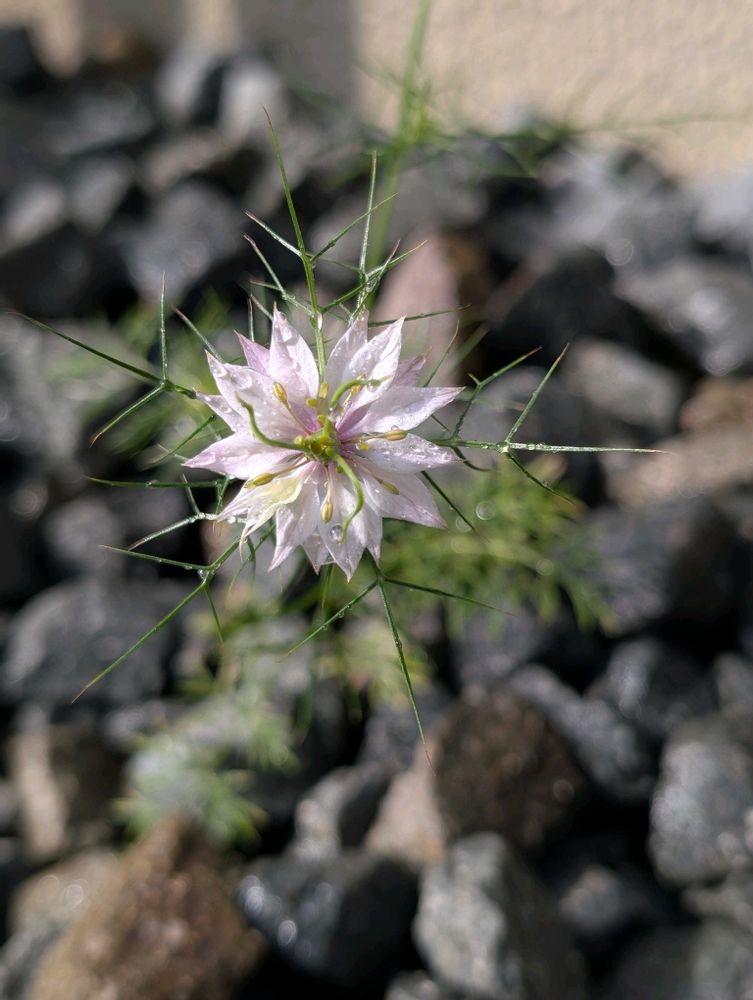 ③砂利の上に生えたニゲラ- ̗̀👏🏻 ̖́‐