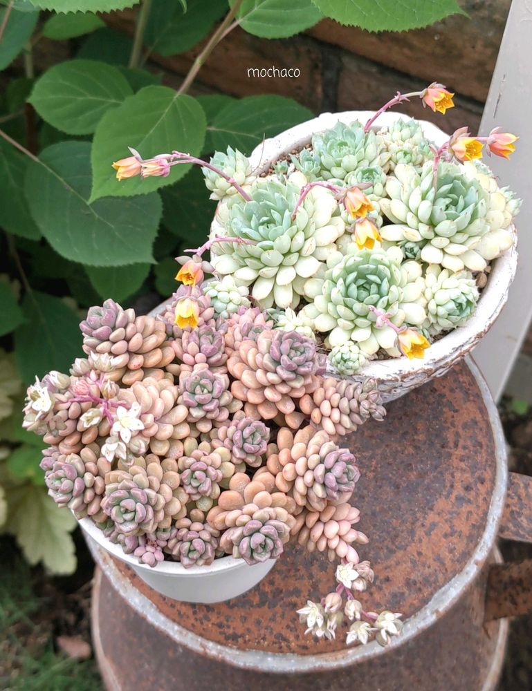 今年はいつもより早めに多肉の花をカットしてたけど この2鉢は咲き始めるのが遅かったのか気が付かず咲いちゃいました😅