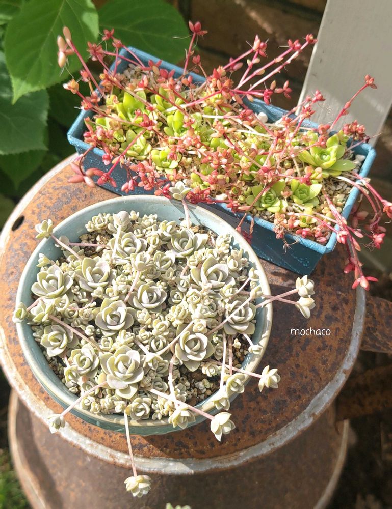 花壇の子持ち蓮華はぱかっとしてるけど寄せ植えに入れようとカットしたのに使わなかったのを適当に挿しといた鉢が可愛く育ってました😅