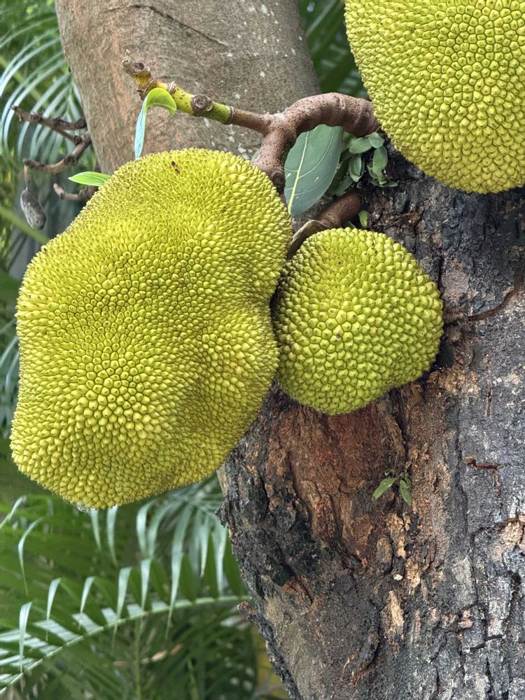 公園のこの道、久しぶりに通ったら、ジャックフルーツがすごく育ってる👀😋💚💚💚