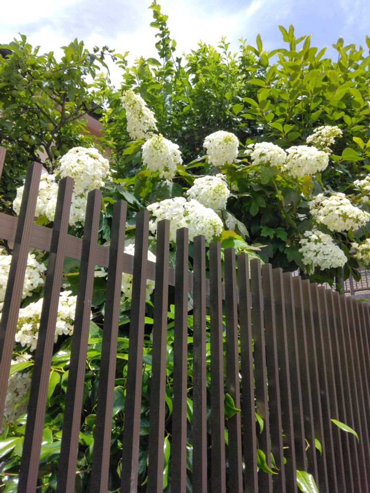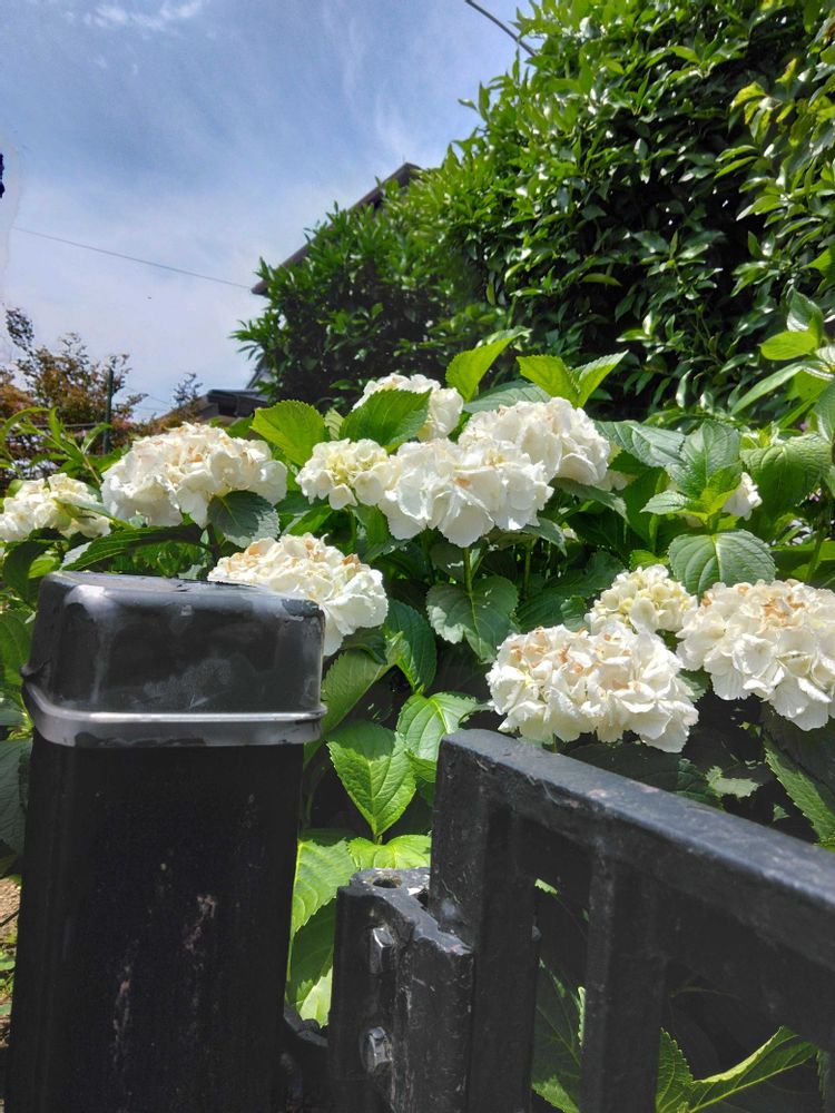 2⃣白花の紫陽花門扉の反対側で咲いていた🎶