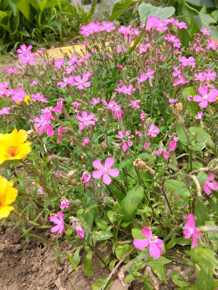 4⃣松葉牡丹の🟡とムシトリナデシコかな?