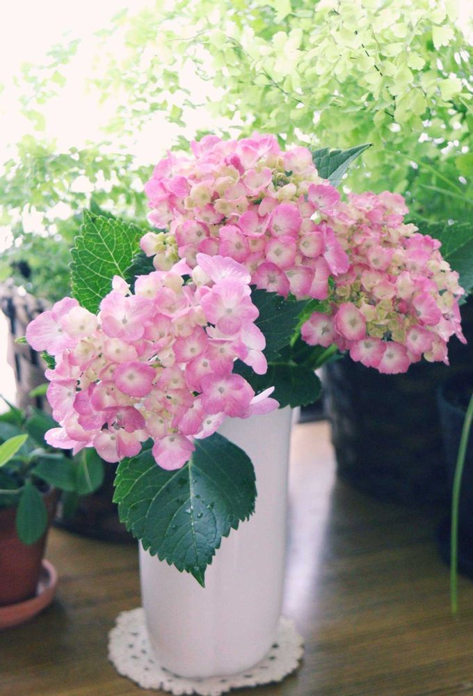 お気に入りの紫陽花なので視界に入るとニヤけます。切った時から少し日にちがたってますので、だんだん色も変化し、大きく咲いてきてますが、ずっと可愛いままです💖良い日曜日を☺️