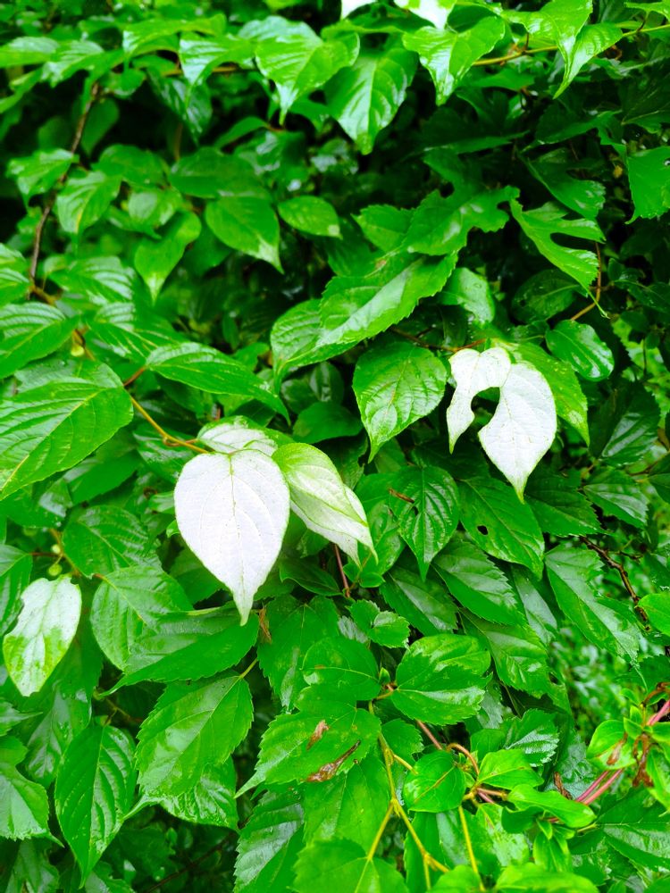 野生の物の方がマルベリーよりも普通に美味しかった。完熟したの触ると手が真っ赤っ赤になるのが難点ですね。③、④マタタビ。マタタビは花が咲きだすと葉っぱが白く変色しだすから非常に見つけやすい。