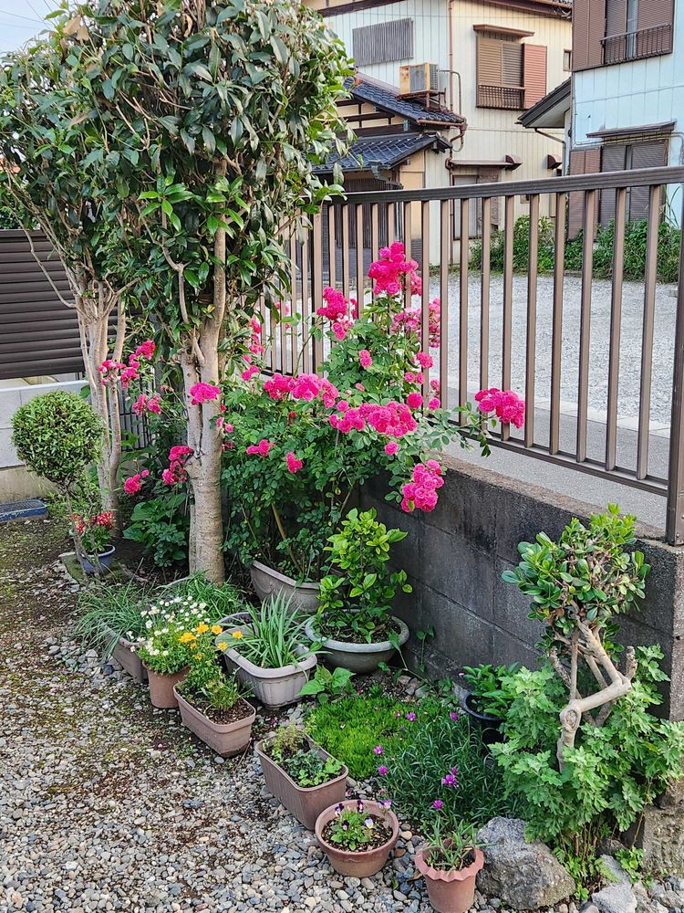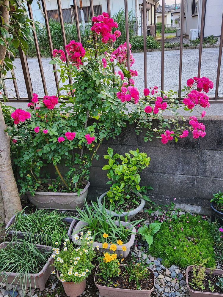 庭のミニバラ 咲き終わっちゃいましたけど 数年前に実家から譲り受けて挿し木で始めました🌱