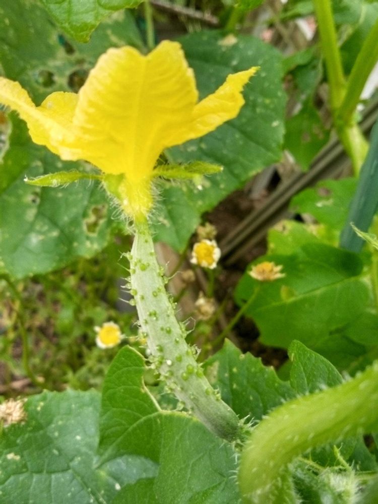 私もきゅうり🥒苗からですが1メートル位に伸びて、チビきゅうり、同じようなのが幾つか出来てきました。