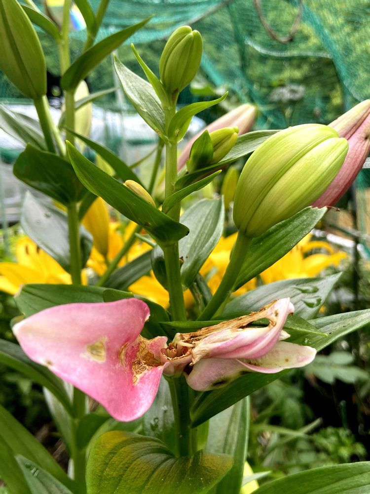 しかし‥二番バッターの予定やった薄いピンク🩷の百合さんが‼️何とも哀れな姿になってる⤵︎⤵︎虫にやられてボロボロやん😭💦