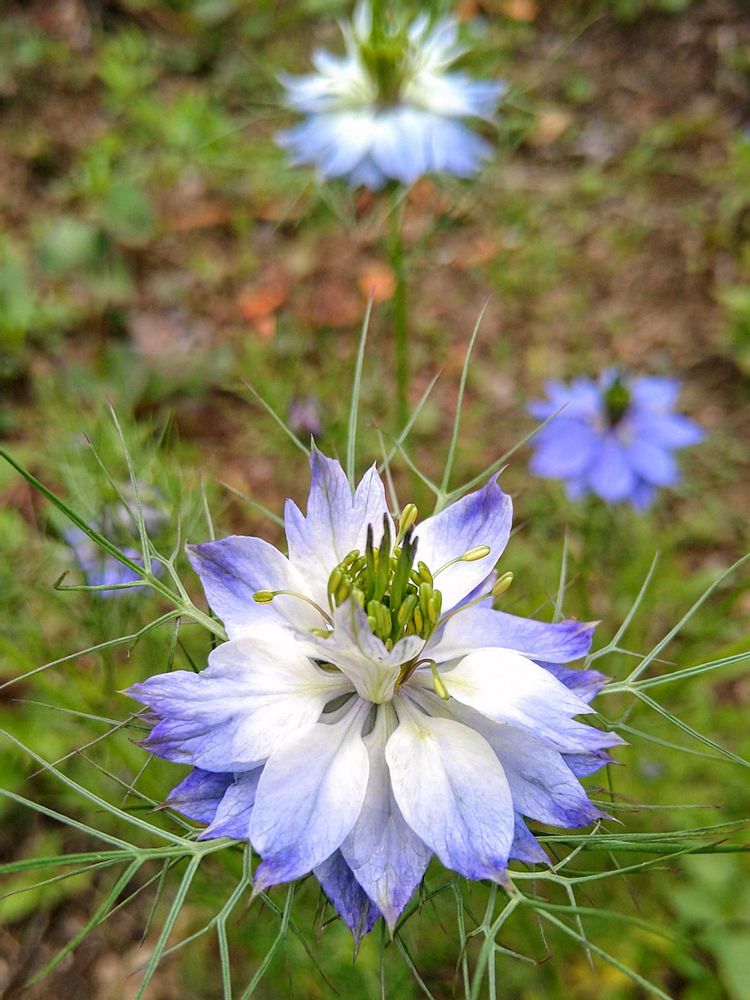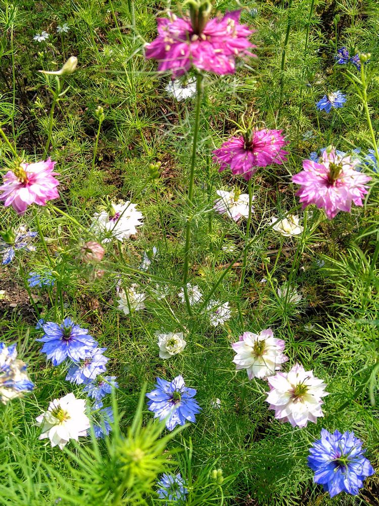 ③④ 今年もこぼれ種からのニゲラがたくさん咲きました✨🩵🤍💗✨