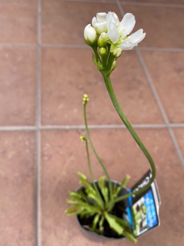 ハエトリグサ、こんな可愛い花が咲くんですね😳。何度も途中で☆にしてしまい😂花を見たことなかった。