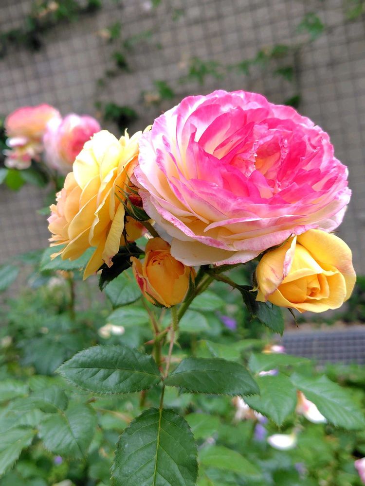 黄色からピンク色に変わるバラがあるんですね、ビックリ。