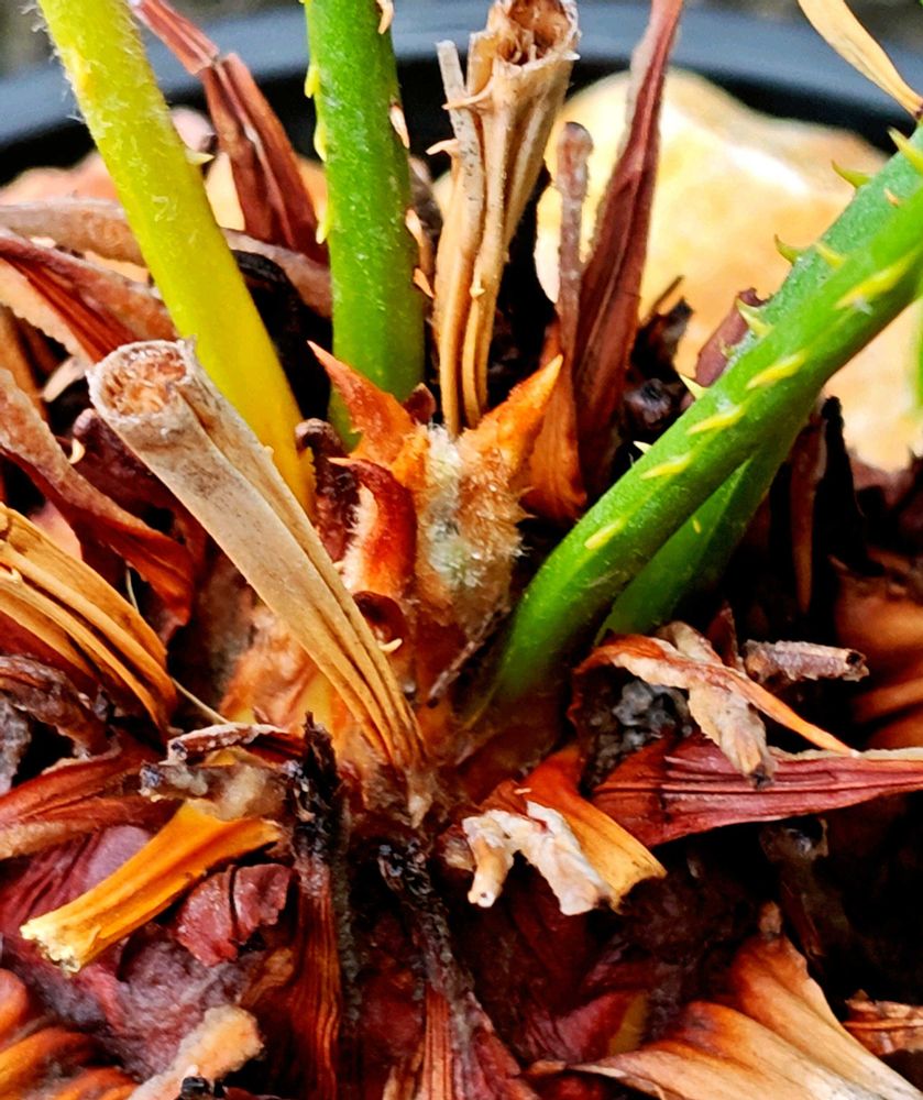 うちのソテツはあちこちに里芋の様な子株がボコボコ…