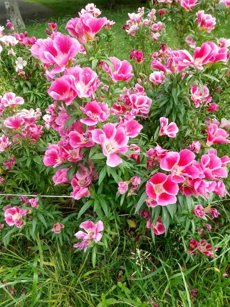 ②ずっと咲いてるゴデチア。大きなナデシコのようなアグロステンマのような花です。