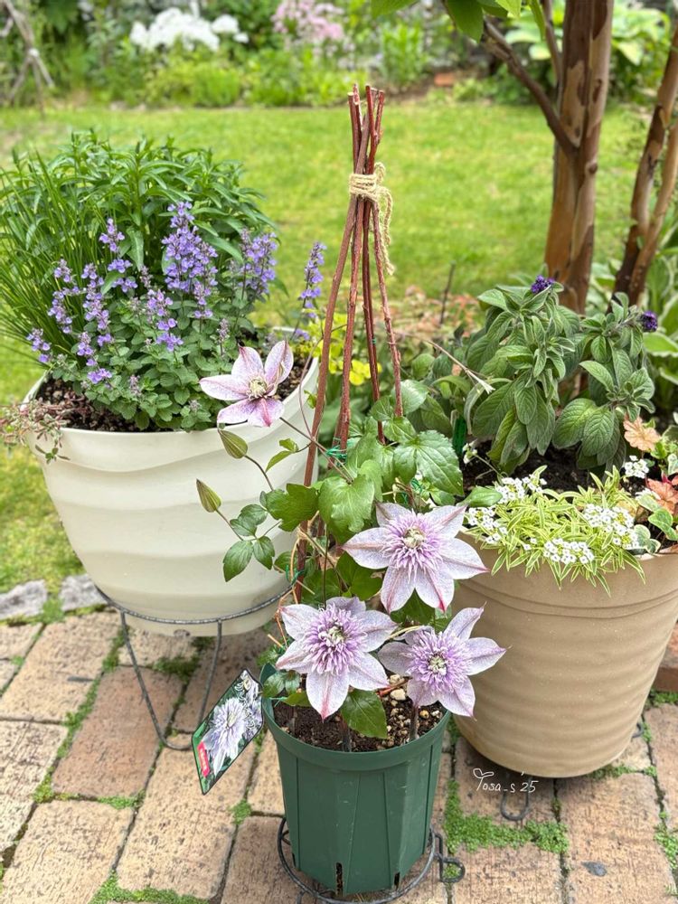 寄せ植えと一緒に八重咲クレマチス(水面の妖精)🧚
