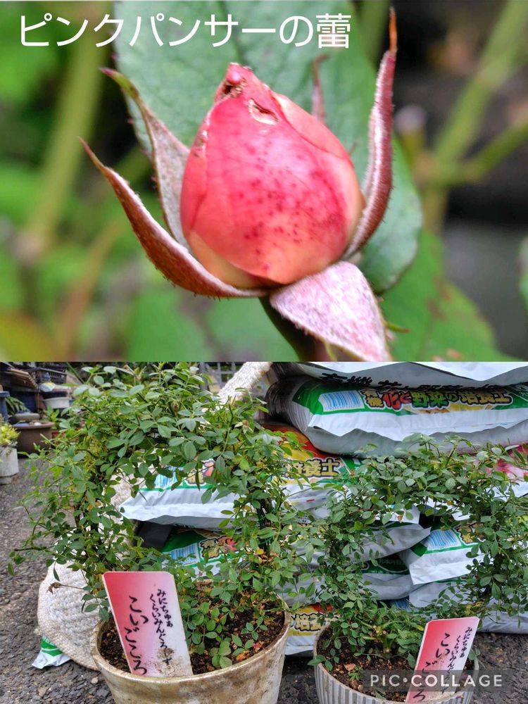 ①ピンクパンサーに2度目のつぼみがついてます1鉢 100円で買ってきたミニバラ 軽く 剪定しておきました