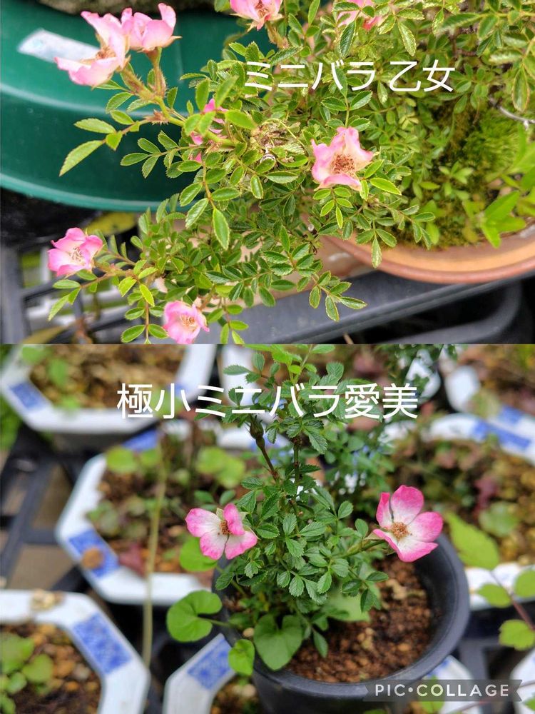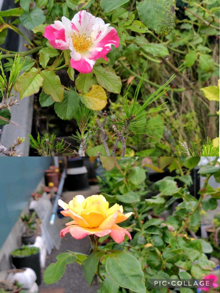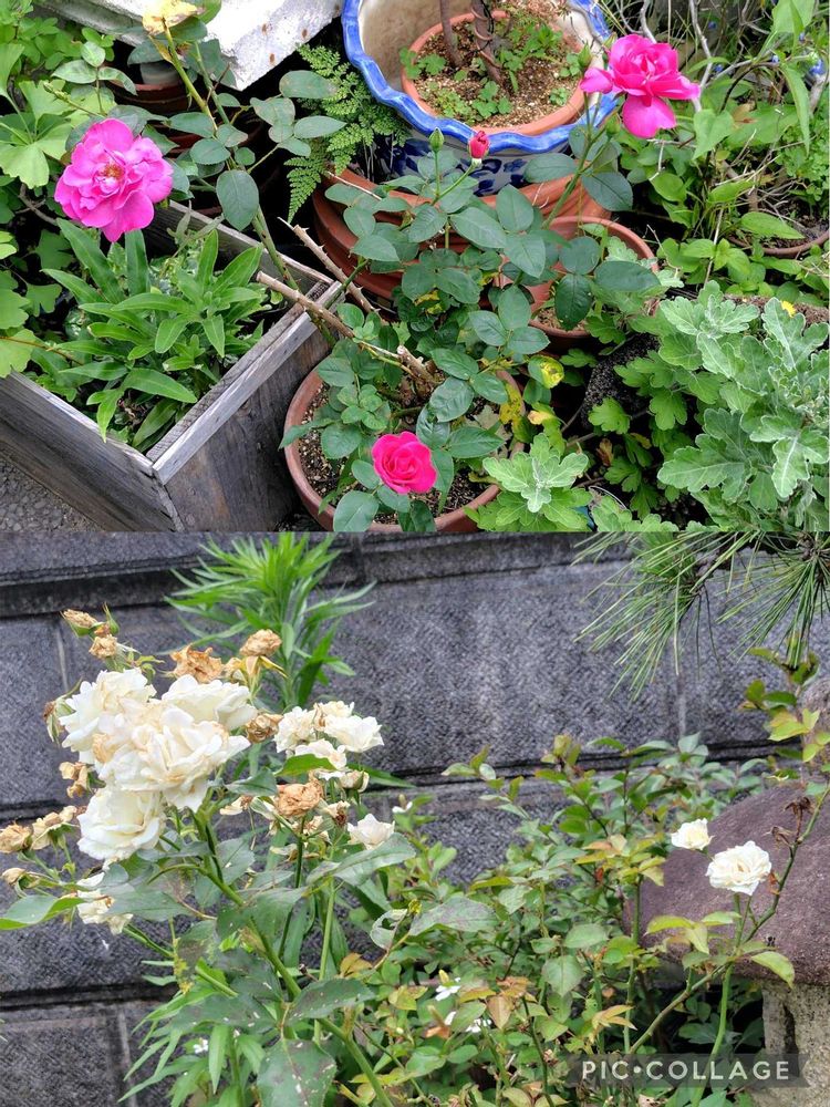四季咲きのバラと ミニバラ ほったらかしでも 1年に何度か咲いてくれますよ 忘れた頃に 植え替えはするけどね🤭