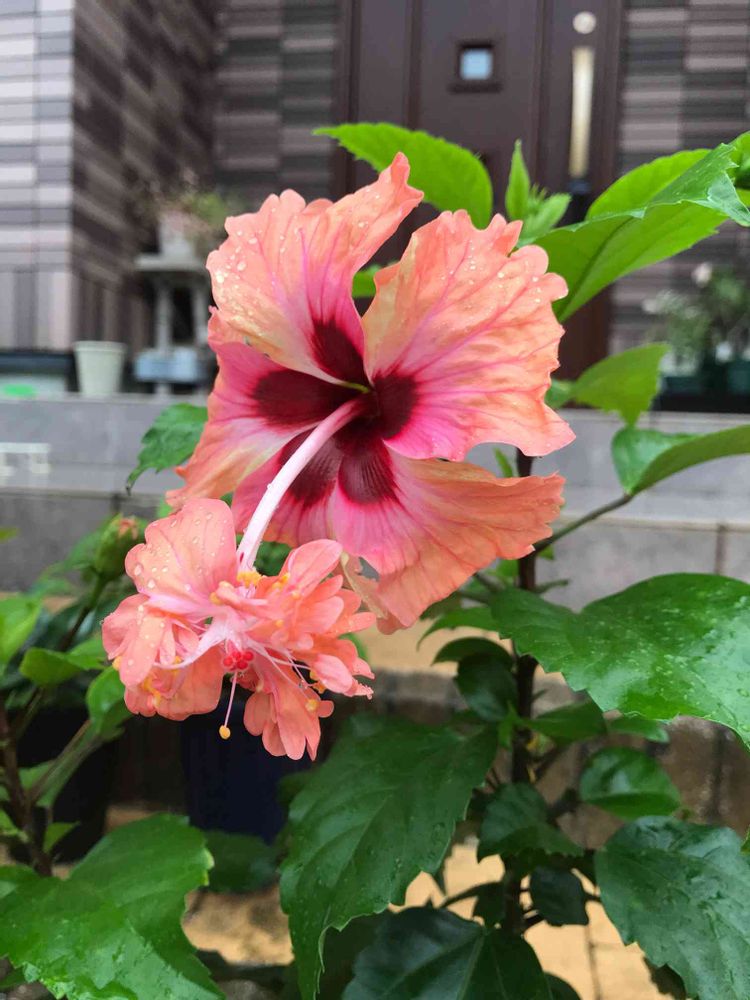 雨に濡れるハイビスカス オレンジフラミンゴさん🧡