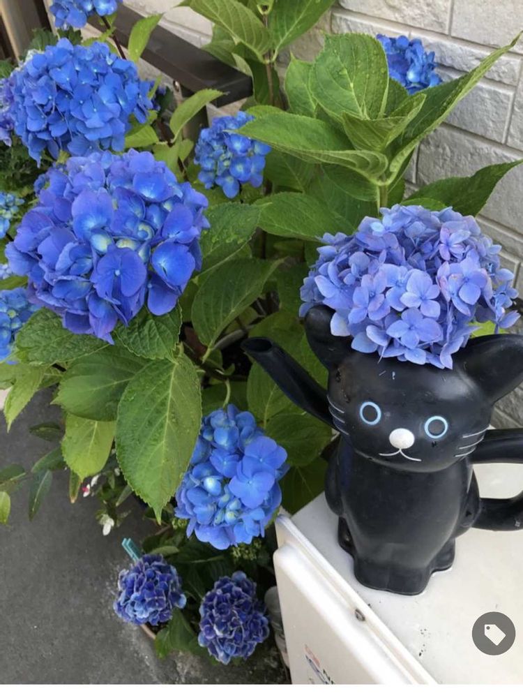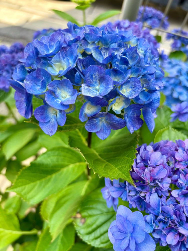 玄関横の大鉢は青い紫陽花の集いの場💠