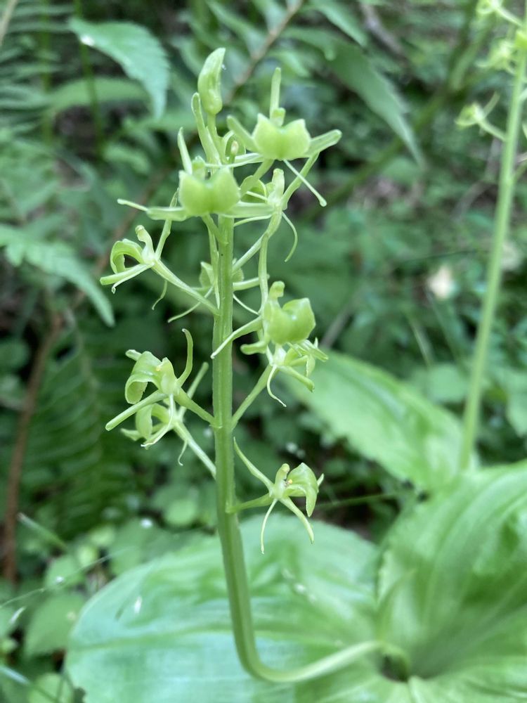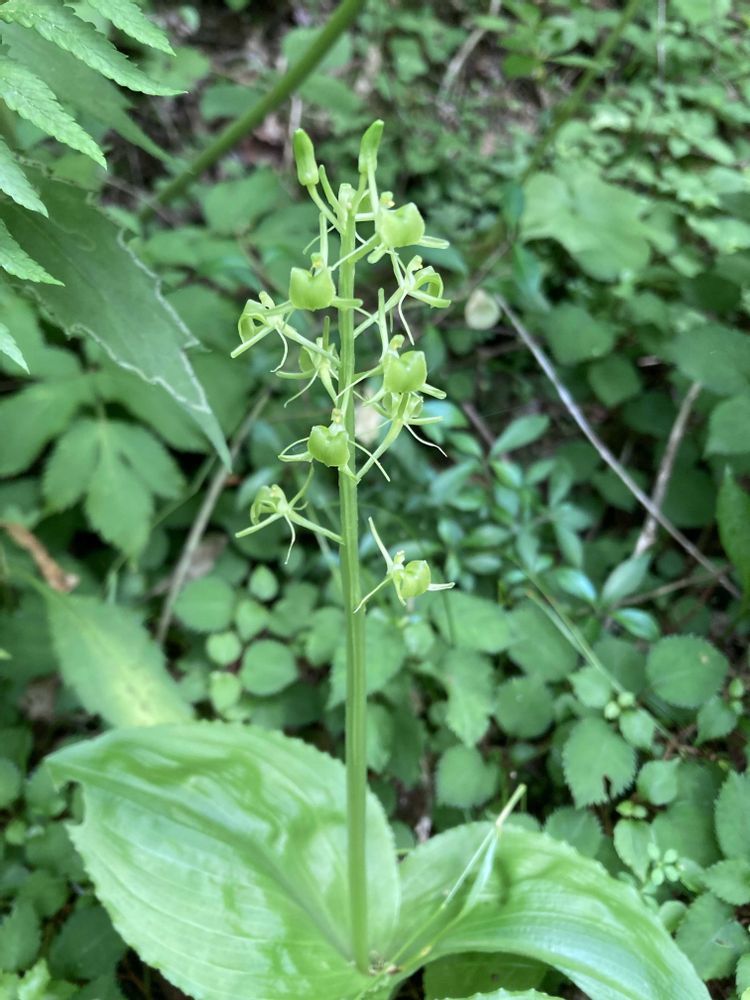 花探しして、数年前に見たクモキリソウを探しました。蘭の仲間。株が大きくなっていました♪