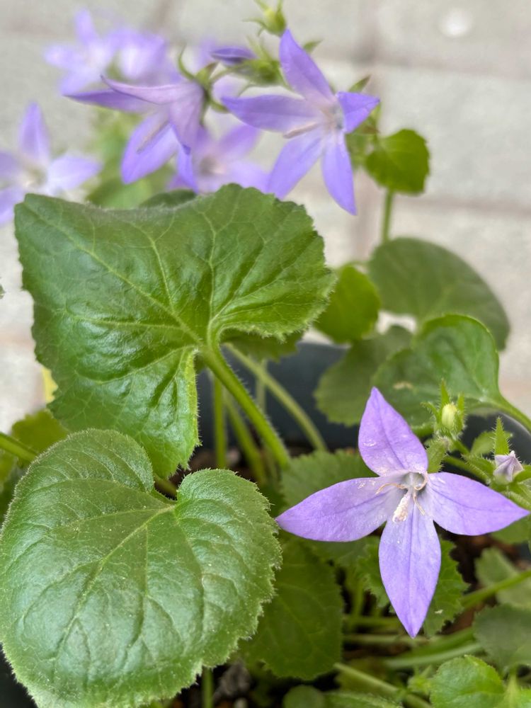 ③鉢に刺している札には“アルペンブルー”とありました。帰って調べたらカンパニュラ『アルペンブルー』のようです。花弁は5枚のはずですが、手前のアップで撮った花はたまたま4枚でした😅💦