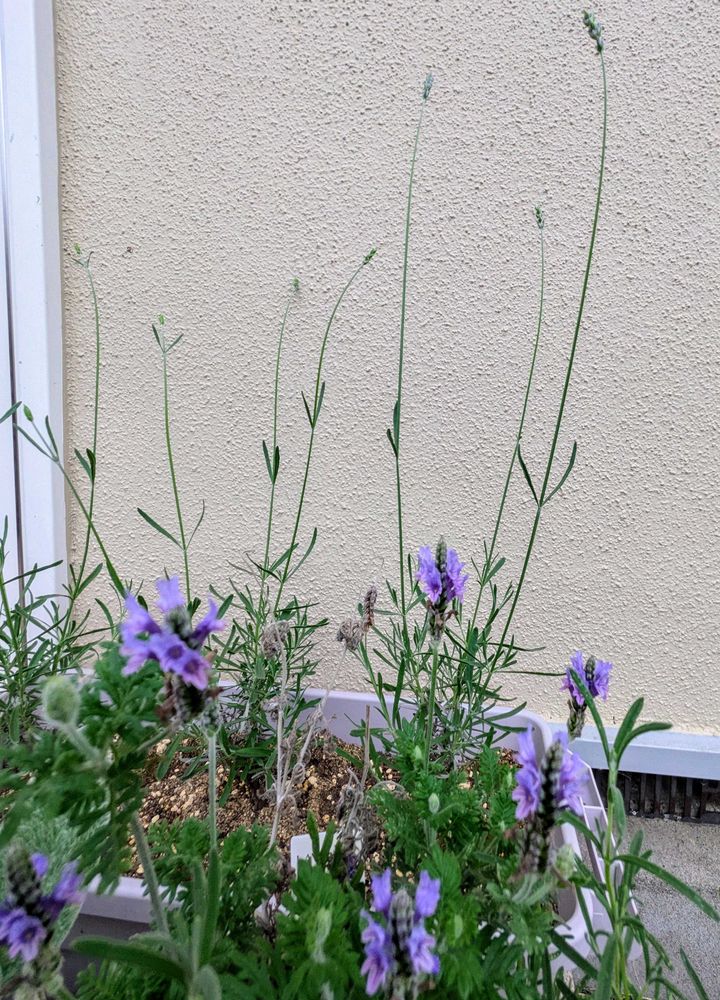 ラバンジン系のラベンダー🪻はまだ蕾ですが…フレンチラベンダーは薄紫のお花を咲かせていて癒されます💜