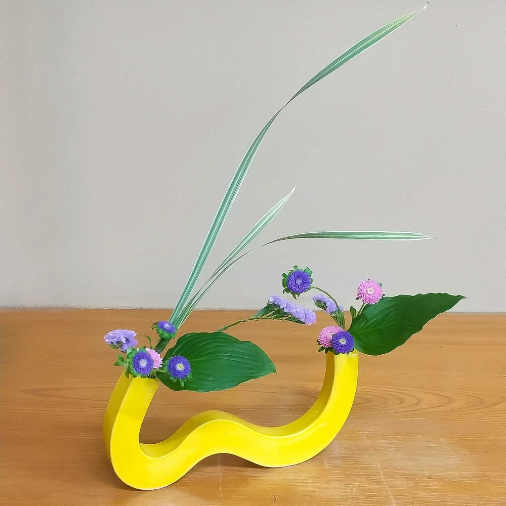 アスターも紫なので、映えさせるため黄色の花器にしました💛💜💛