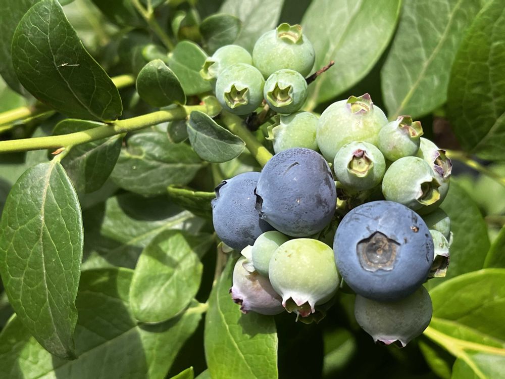 ブルーベリー(サザンハイブッシュ)が色付き始めてます。