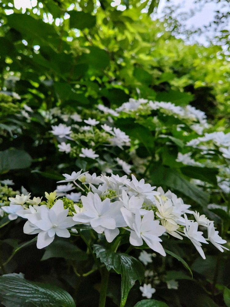 ガク紫陽花ともヤマ紫陽花とも違う、素敵な咲き方、そしてごく薄い青がかった白🤍🤍💙