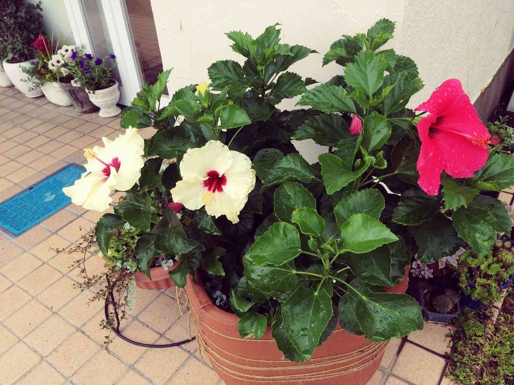 太陽は無くともハイビスカスさんたちは今日も元気に咲いてくれています(^ν^)