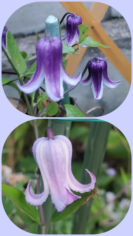 今晩は😃コメントありがとう~クレマチス小さい花だけど少しずつ咲いています😊雨☔が少し心配