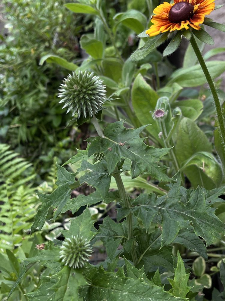 ❶バラ アンバティーク&ミニバラコルダナ✨✨アンバティークは今シーズン二度目の開花(まだ蕾でした💦)🙌🙌❷エキノプス、ルリタマアザミ✨✨苗を購入しました😅種蒔きでも育てられますが…なんとなく苗を買っちゃいました💦