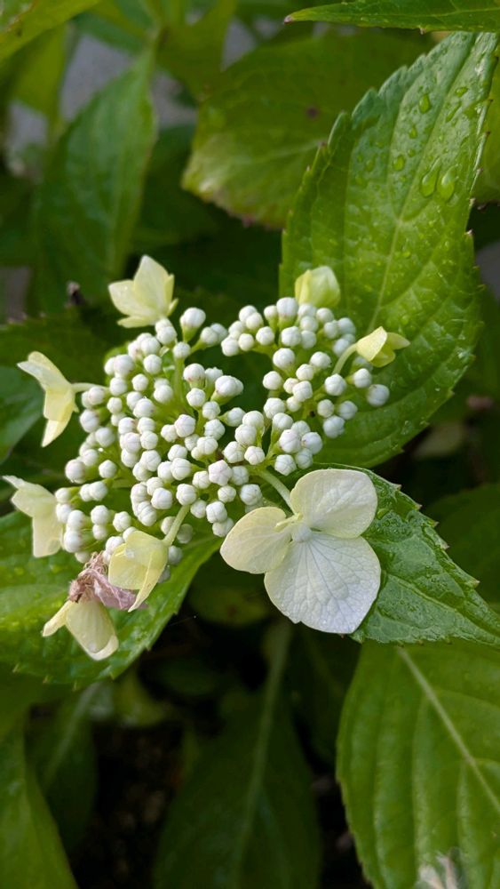 この2つは挿し木3年目、青い方は昨年から咲いてるけど、白い額紫陽花は初めての開花です🤗