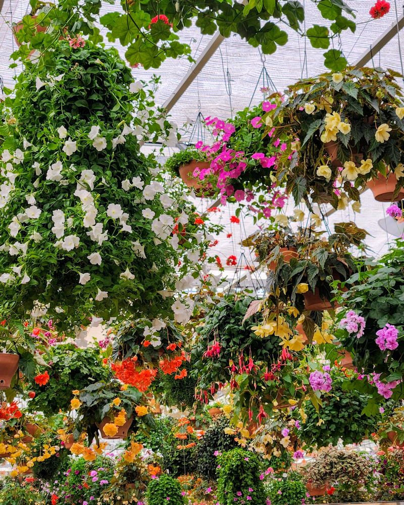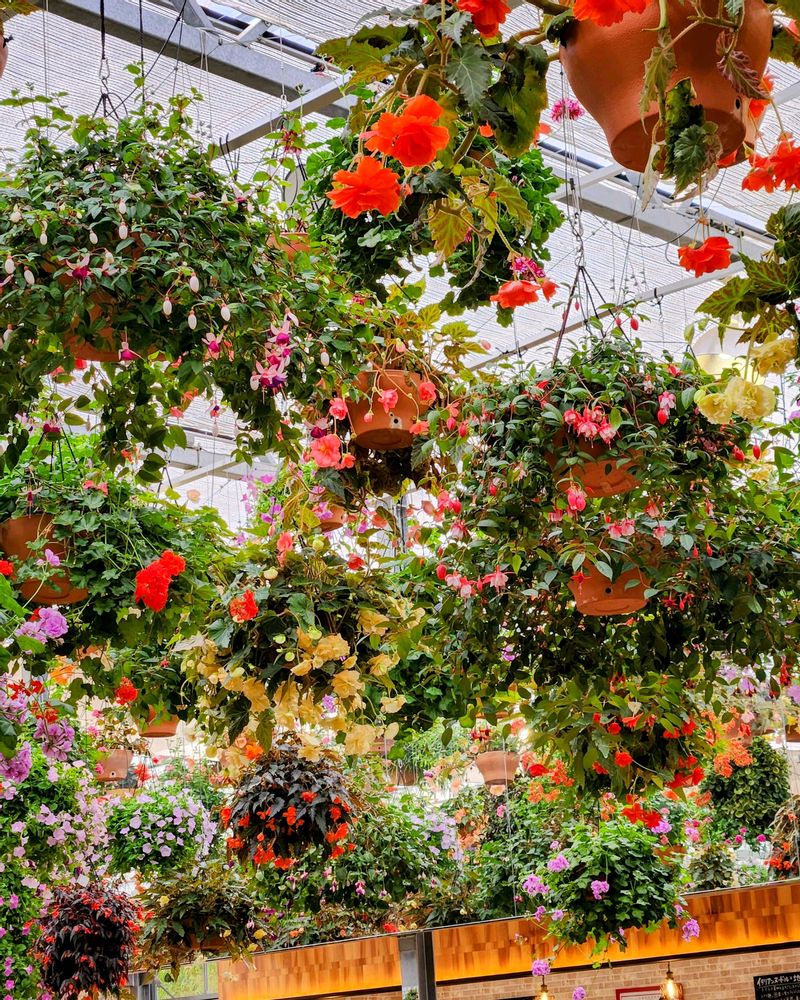 三島のスカイウォークにあるスカイガーデンは天井から沢山の花の鉢植えが吊るしてあります🌸