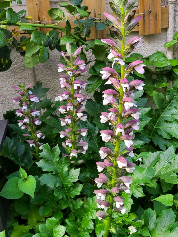 ご近所さんで昨年見つけそろそろ咲いてるかと寄ってみました😊 珍しいお花です💓 ギリシャの建築にモチーフとして用いられた様です、又旧一万円札にも描かれていることを知りました。葉が大きく花穂状がシックで素敵な姿に魅了されてます♪︎♪︎♪︎♡♡